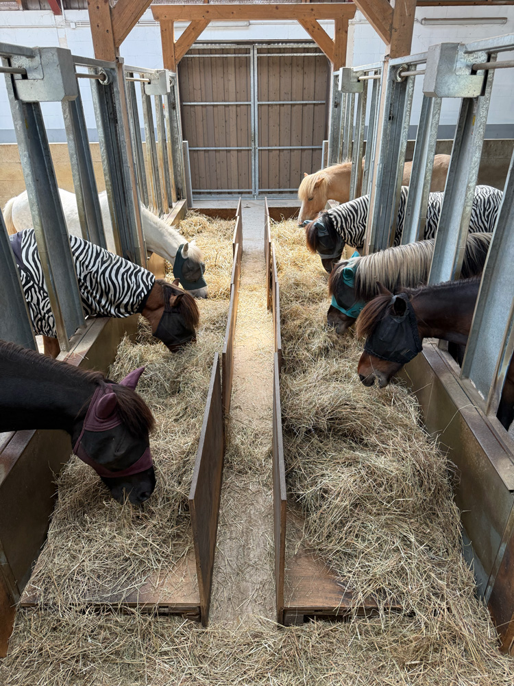 - Mehrfache Fütterung am Tag mit Heu und/oder Heulage via automatischer Fütterungsanlage